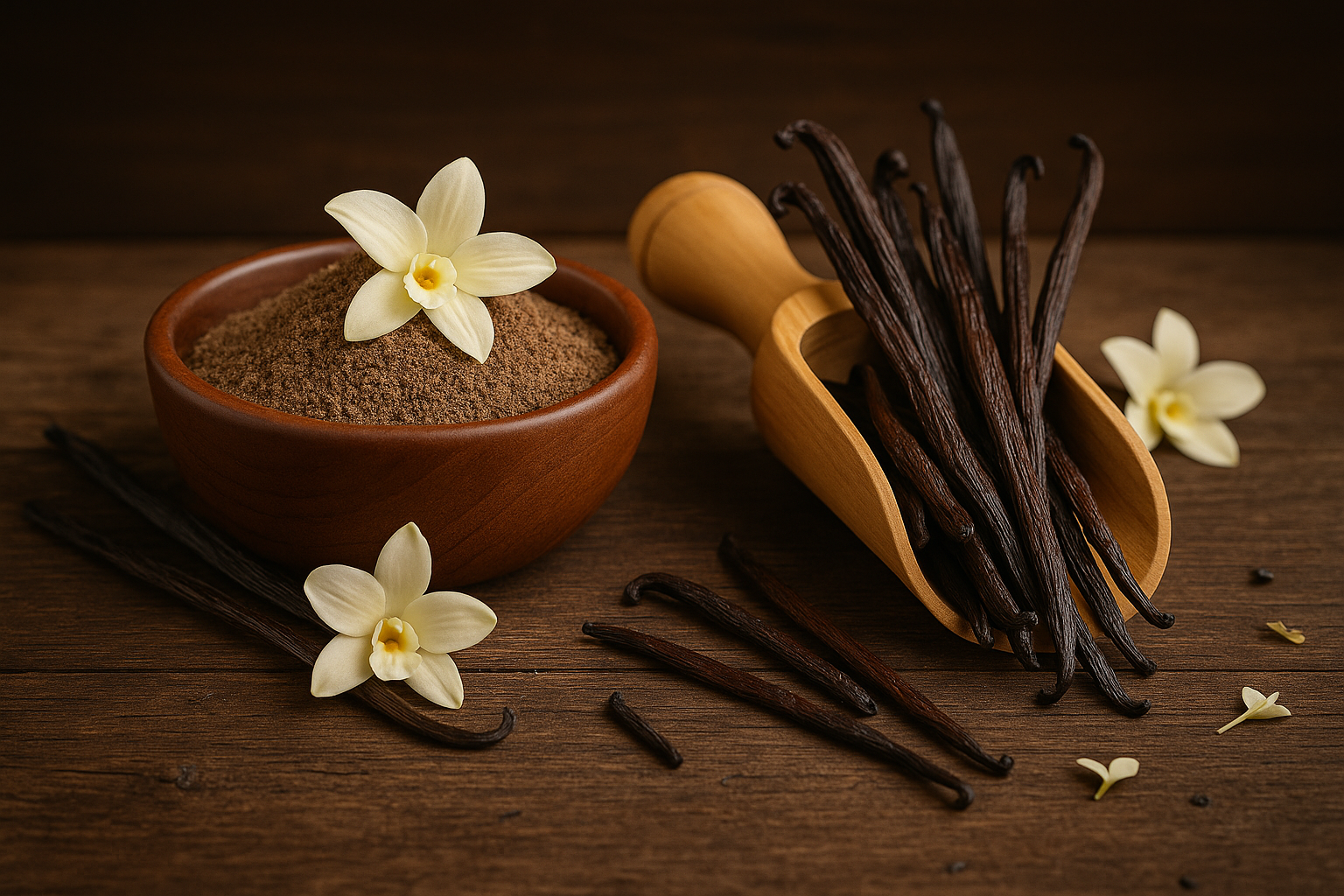 La vanille, véritable or noir des Tropiques, fascine par son histoire et ses arômes uniques. Chez Kaz à Vanilles, nous proposons les deux grandes variétés : la vanille PLANIFOLIA aux notes puissantes et souvent boisées, et la vanille POMPONA, rare et intensément parfumée.